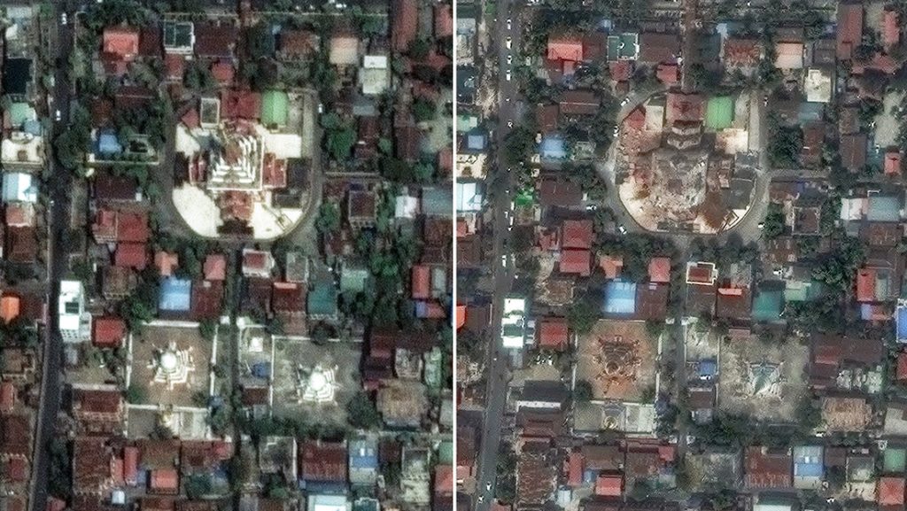Imágenes captadas por los satélites de Maxar Technologies muestran el impactante antes y después del terremoto de magnitud 7,7 registrado el pasado viernes en Myanmar.
