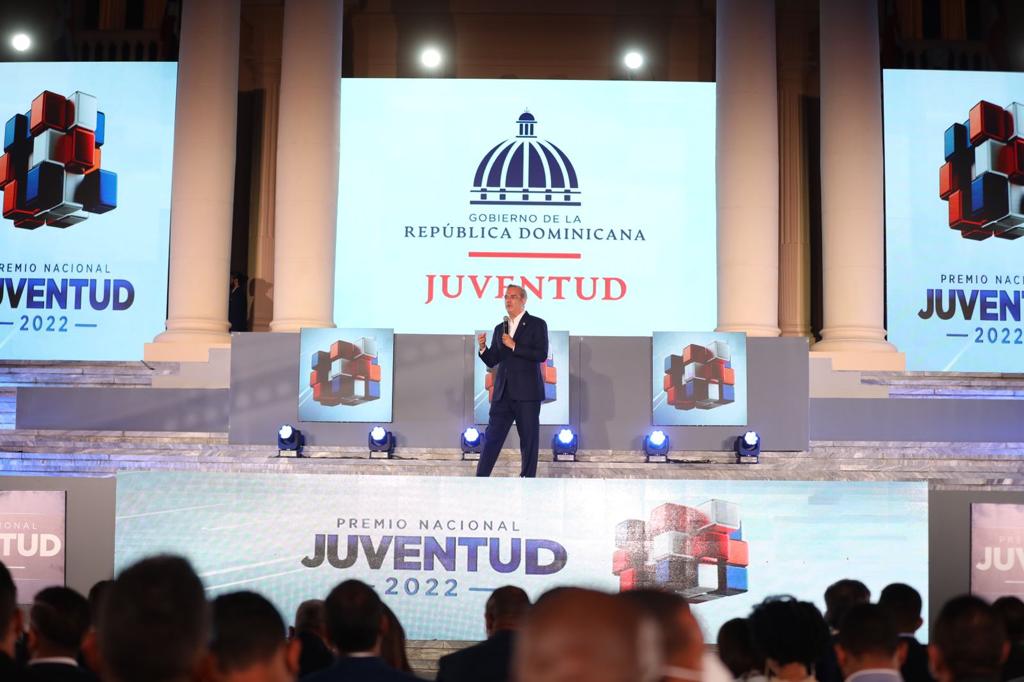 Santo Domingo.- El presidente Luis Abinader, la vicepresidenta Raquel Peña y la primera dama Raquel Arbaje presidieron este lunes junto al ministro de la Juventud Rafael Féliz García la vigésima sexta entrega del Premio Nacional de la Juventud (PNJ-2022), dedicado en esta ocasión al emprendimiento e innovación de los jóvenes de toda la República Dominicana.
