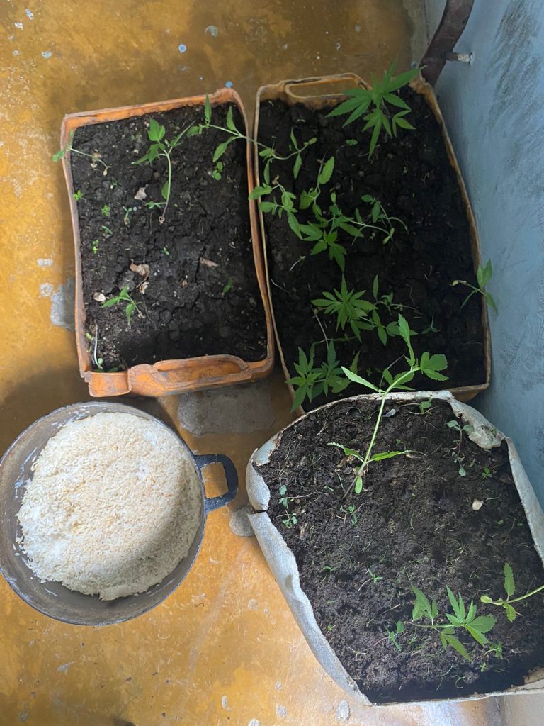 Las matas de marihuana estaban colocadas y distribuidas en pedazos de galones con tierra. Lo ocupado será puesto a disposición de las autoridades correspondientes, mientras se trabaja en la captura de los prófugos.