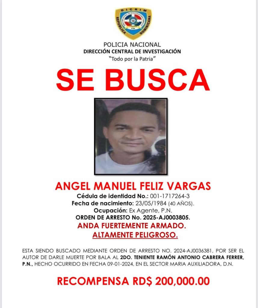 En tanto, Feliz Vargas, de 40 años, es señalado como uno de los responsables del asesinato del segundo teniente Ramón Antonio Cabrera Ferrer, ocurrido el 9 de enero de 2024 en el sector María Auxiliadora, del Distrito Nacional.