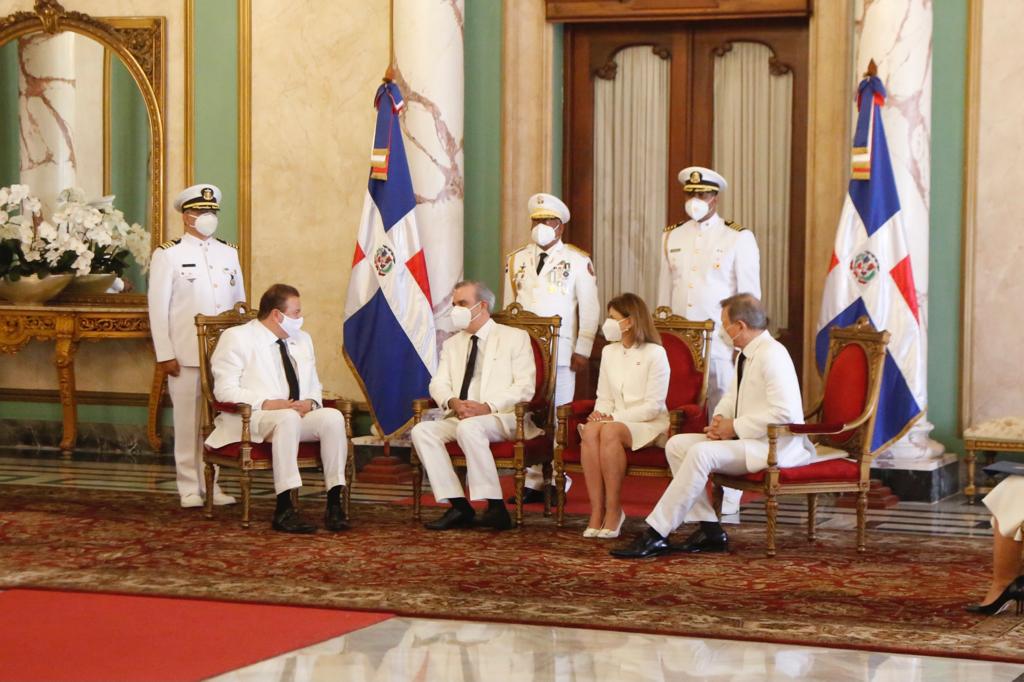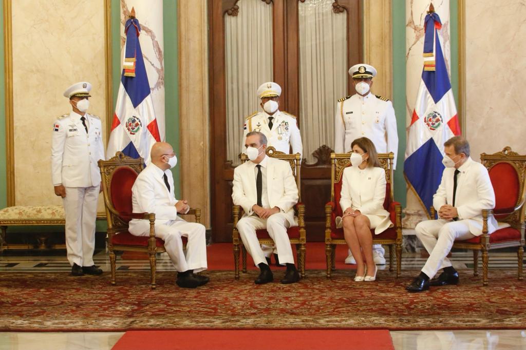 El acto protocolar se efectuó en el Salón de Embajadores del Palacio Nacional, donde el jefe de Estado estuvo acompañado de la vicepresidenta de la República, Raquel Peña y del ministro de Relaciones Exteriores, Roberto Álvarez.