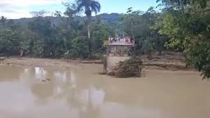La crecida del rio Camú provocó la caída del puente que conecta la carretera turística con el municipio de Luperón.