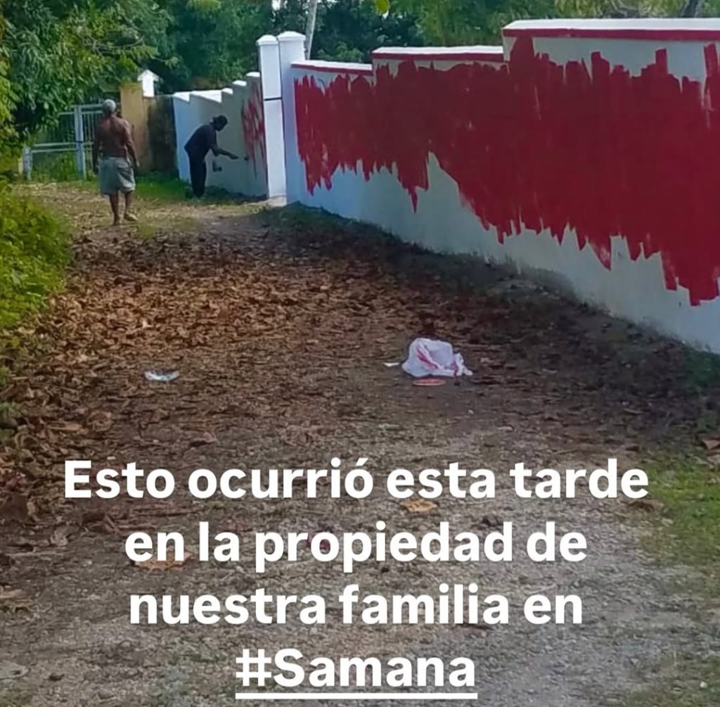 “Algo hay de por medio aquí en RD no andan manchando las paredes de propiedades ajenas por nada y claramente esa mancha tiene un mensaje”, escribió alguien en la cuenta de Instagram del programa ‘El Gordo y La Flaca’, que publicó las imágenes de denuncia del artista.